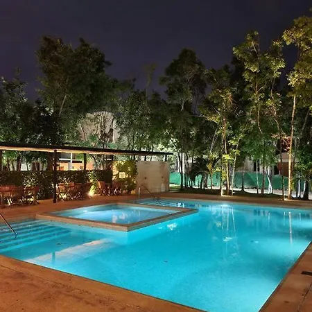 卡门海滩, 金塔纳*罗奥机场距离别墅有5分钟车程. 客人可以在别墅内的游泳池边度过美好的时光.